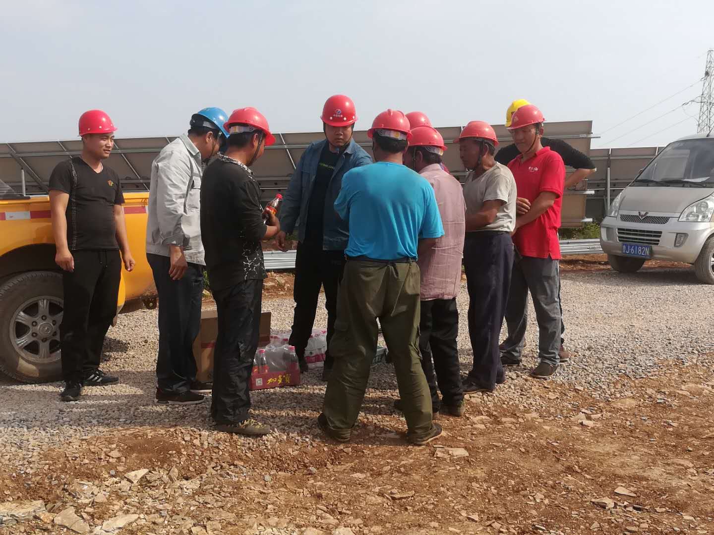 公司山亭50MW光伏发电项目工地施工中,业主鲁能新能源枣庄公司、总包宁夏电建公司的相关管理人员慰问奋斗在一线的员工。